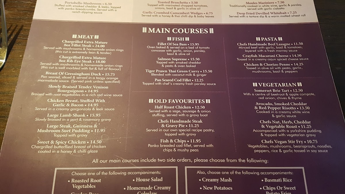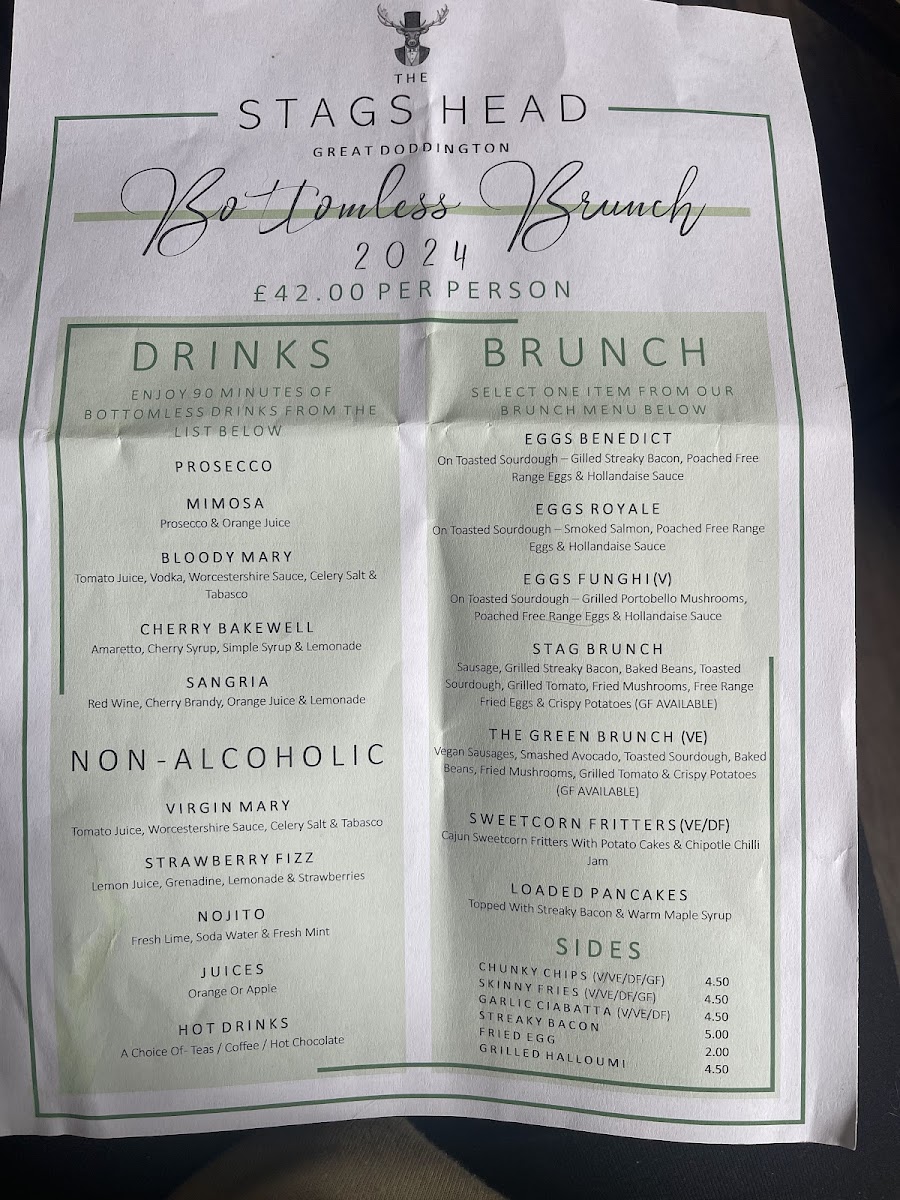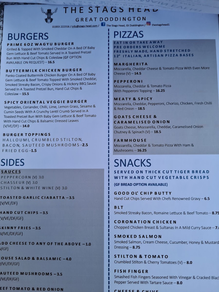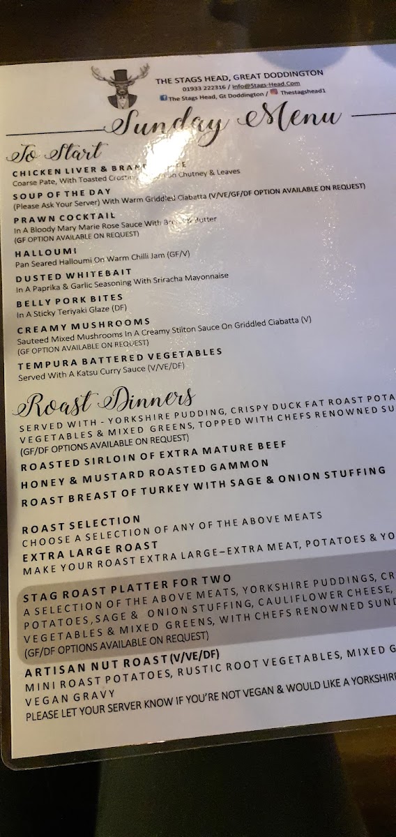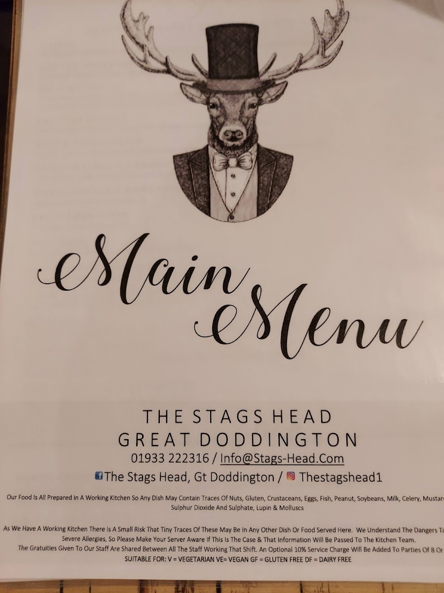 The Stag's Head Great Doddington Menu