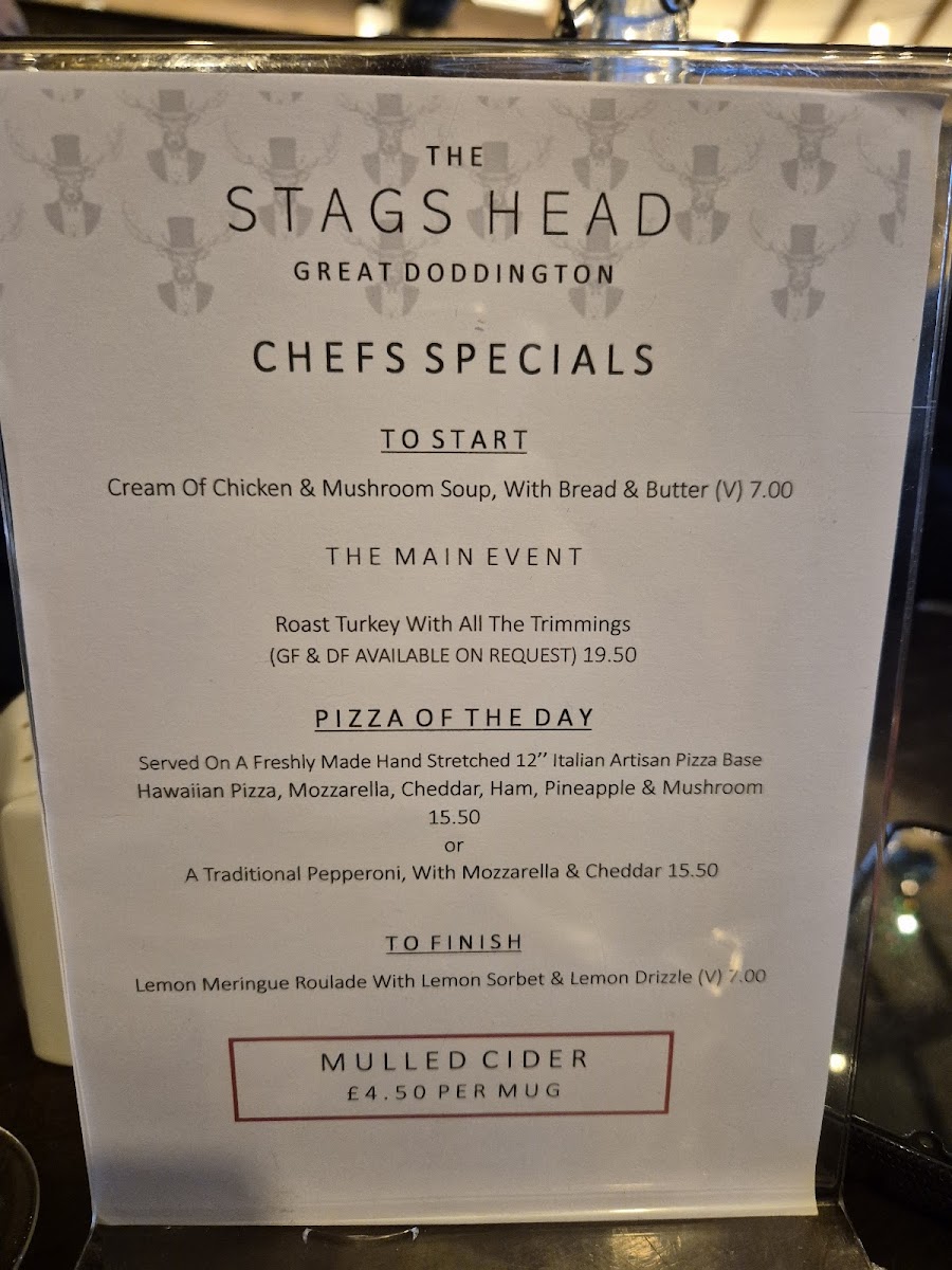 Seasonal touches and traditional desserts such as Christmas Pudding with Custard round out the experience, lending familiar warmth to meals. Overall, the menu supports a sense of ease and enjoyment, with dishes that feel at home in the friendly, lively atmosphere The Stag's Head is known for.